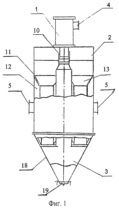– на фиг.2 схематично изображена конструкция прямоточного циклона;
