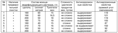 Способ очистки и модифицирования поверхностей шестеренных насосов для перекачивания растворов по изготовлению искусственного волокна, включающий очистку и модифицирование в щелочном растворе и механическую очистку, при этом предварительную очистку проводят в растворе уайт-спирита и механическим путем, а модифицирование и окончательную очистку проводят в растворе, содержащем щелочь NaOH – 180-200 г/л, силикат натрия Na2SiO3 – 50-70 г/л, триэтаноламин (HOCH2CH2)3N – 15-18 г/л, остальное до 1 л воды, при температуре кипения раствора в течение 2 ч, и механическим удалением продуктов загрязнений.