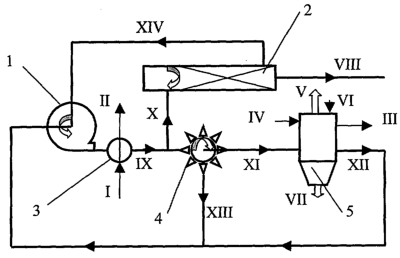 – отбора нагретой рециркуляционной жидкости IX и подачи части ее на фильтрацию и промывку – X,