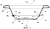 На фиг.2 представлен предпочтительный вариант выполнения загрузочного люка 2 согласно изобретению. Загрузочный люк 2 состоит из участка 4, составляющего боковую стенку, из жесткого синтетического материала и участка 5, составляющего дно, образованного минеральным смотровым стеклом 10. Смотровое стекло 10 включает внутреннюю поверхность 12, слегка выпуклую в направлении отверстия чаши. В краевой области 14 участка 5, составляющего дно, смотровое стекло 10 выгнуто в направлении участка 4, составляющего боковую стенку, таким образом, что образует закругленный стеклянный выступ 16. По внешнему краю стеклянного выступа 16 смотровое стекло 10 включает наклонно расположенный относительно внутренней поверхности 12 участка 5, составляющего дно, кольцеобразный соединительный участок 6. Соединительный участок 6 заканчивается верхним концом 18, имеющим кольцеобразное удлинение 22, расположенное по существу параллельно внутренней поверхности 12 участка 5, составляющего дно чаши.