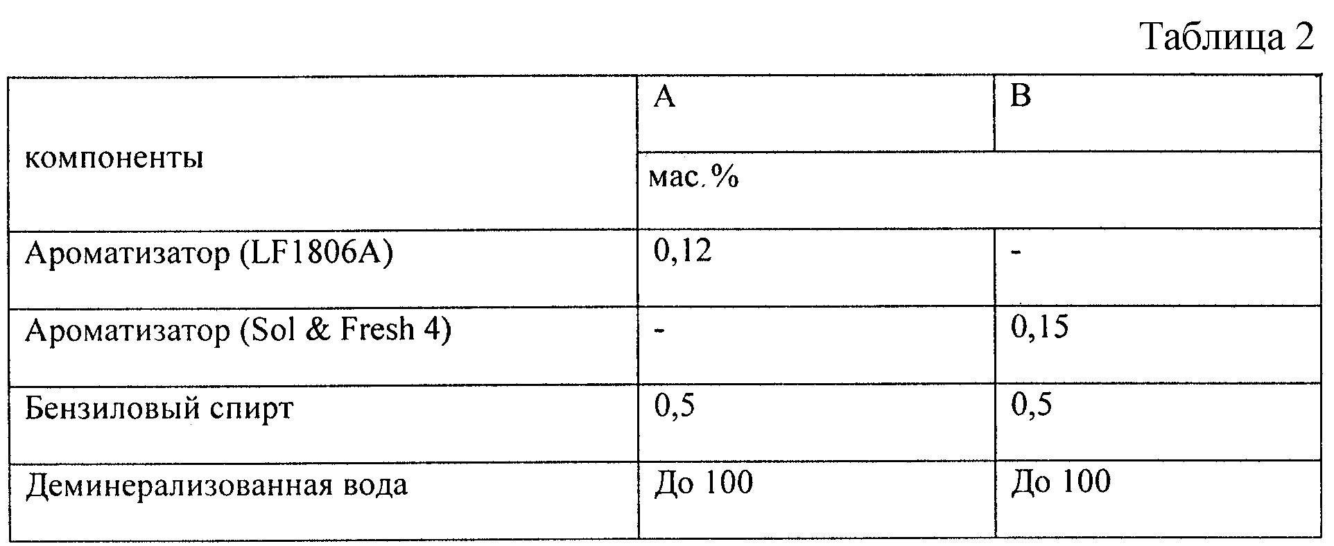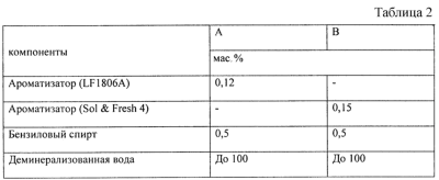 Область техники Настоящее изобретение относится к композиции вспомогательного средства для глажения, которое удобно для непосредственной заливки в водяной резервуар парового утюга, в которой композиция испаряется и выходит через паровыпускные отверстия утюга. Изобретение касается также способа приготовления композиции вспомогательного средства для глажения и концентрата композиции вспомогательного средства для глажения, который после необходимого разбавления дает готовую к применению композиции вспомогательного средства для глажения. Предшествующий уровень техники Потребителем иногда требуется продукт, который может быть непосредственно залит в камеру парового утюга и эффективно передавать аромат отглаживаемой одежде (белью). Такие продукты обычно имеют водную основу. Однако значительное большинство ароматизирующих компонентов существенно не растворимы в воде и поэтому для создания изотропного раствора (или микроэмульсии) нуждаются в дополнительном солюбилизаторе. Например, в DE 29600626 раскрывается композиция с масляными ароматизирующими веществами, которые трудно растворимы или не растворимы совсем. Обычный способ солюбилизации ароматизатора в воде состоит во введении ПАВ-эмульгатора, типичными примерами которого являются анионные, катионные, амфотерные, цвитерионные и особенно неионогенные ПАВ, из которых наиболее распространены этоксилаты спиртов. В настоящее время во многих поступающих на рынок продуктах использован именно такой способ солюбилизации ароматизатора и достижения определенного уровня ароматизации. Например, в GB 2333302 описывается композиция вспомогательного средства для глажения с неионогенным ПАВ для диспергирования гидрофобного ароматизатора. Однако проведенные изобретателем испытания показали, что известные продукты, предназначенные для дозированной загрузки в камеру парового утюга, могут создавать проблему, обусловленную экстремальными температурами, которым подвергаются композиции. Температура внутри паровой камеры парового утюга может нормальным образом меняться от 150 до 270°С и для утюга, настроенного для глажения хлопковых тканей, обычно колеблется около 200°С. Были созданы композиции, состоящие из деминерализованной воды и 0,40 мас.% следующих обычных неионогенных ПАВ: CremophorТМ СО 40 (BASF – отвержденное касторовое масло, этоксилированное до 40 ЭО), SoftanolТМ 90 (Ineos – смесь вторичных С13-С14-спиртов, этоксилированных до 9 ЭО), NeodolТМ 25-9 (Shell – смесь первичных C13-C15-спиртов, этоксилированных до 9 ЭО), LialТМ 111 10 ЭО (Condea – С11-спирт, этоксилированный до 10 ЭО), GenapolТМ 200 (Clariant – кокосовый спирт, этоксилированный до 20 ЭО). Эти композиции дозировано загружались в паровые утюги, которые после этого использовали для глажения махровых полотенец для рук. При использовании всех этих композиций появлялся запах пригорелости, который неприемлем для продукта, предназначенного для ароматизации белья в процессе глажения. В другом испытании в паровых камерах утюгов Philips Mistral H1 312 были испытаны следующие композиции: (i) только деминерализованная вода; (ii) 0,016 мас.% NipacideТМ ВТ LC (от Nipa Laboratories), остальное – деминерализованная вода; (iii) 0,2 мас.% CremophorТМ CО 40, остальное – деминерализованная вода. Утюги каждый день заполняли подходящей композицией в течение 10 дней и подвергали глажению наволочки из 100%-ного хлопка то