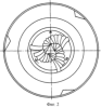 Изобретение иллюстрируется следующими чертежами: на фиг.1 представлена принципиальная схема установки ротора в гидроразбивателе; на фиг.2 – вид ротора сверху; на фиг.3 – вариант выполнения диска с тремя вогнутыми участками на боковой поверхности, чередующимися с тремя выпуклыми участками; на фиг.4 – вариант выполнения диска с четырьмя вогнутыми участками боковой поверхности диска, чередующимися с четырьмя прямыми участками.