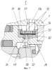 В клапан переключения, в линии входа 37а и 37б поступающей от исполнительного механизма по каналу 38 рабочей жидкости, встроены фильтрующие устройства 49 (фиг.2, 7), каждое из которых состоит из коаксиальной втулки 50 с наружной профилированной канавкой 51, радиальными проходными каналами 52 и фильтрующей сетки 53, обжатой цилиндрической обечайкой 54 с поясом перфорации сквозных отверстий 55. Наружная поверхность 56 фильтрующего устройства 49 через внутреннюю кольцевую проточку 57 и радиальные каналы входа 37а или 37б сообщена со сливным каналом 37 или 38 (фиг.2), а внутренняя 58 – с расточкой большей ступени 26 опорной втулки 24.