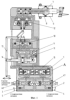 Клапан переключения гидросистем 15 (см. фиг.1, 2) снабжен подпружиненными автоматическими перепускными устройствами 16 дискретного и прямого действия с индикаторными стержнями 39 и выполнен в виде двух оппозитно встроенных в общий цилиндрический канал 18 корпуса 1 и разделенных между собой разобщающей втулкой 19 устройств управления 20 и 21 с запирающими элементами типа клапан-седло, каждое из которых состоит из неподвижно и герметично установленных в канале 18 крышки 22, направляющего стакана 23 и трехступенчатой опорной втулки 24, имеющих внутренние ступенчатые расточки 25 и 26 соответственно и кинематически связанных между собой подпружиненных тарельчатого обратного клапана 27 с перепускным устройством 16, установленных в расточках 26 опорной втулки 24 и подпружиненного плунжера 28, герметично размещенного в расточке большей ступени 25 направляющего стакана 23 и имеющего внутреннюю перегородку 29, с одной стороны которой размещена пружина 30, а с другой – образована рабочая камера управления 31, сообщающаяся через радиальные каналы 32 плунжера 28 и направляющего стакана 23 с подводящими напорными магистралями 33 и 34, а через обратный тарельчатый клапан 35, встроенный в малую ступень расточки 25 направляющего стакана 23, с напорным каналом 36 исполнительного механизма (гидрораспределителя 12 и рулевой машины 11).