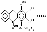 Наиболее предпочтительным классом соединений данного изобретения являются соединения формулы (III)![]() где пунктирное кольцо указывает на то, что кольцо, в котором оно присутствует, является полностью ненасыщенным; R20 обозначает бензильную группу, необязательно замещенную одним или более заместителями, выбранными из атомов галогена, аминогрупп, нитрогрупп и гидроксигрупп; R21 обозначает группу формулы: -Q-Alk-COOH, где Q обозначает атом кислорода или прямую связь, а Alk обозначает низшую алкиленовую группу, причем Alk необязательно замещен бензильной группой, необязательно замещенной далее одним или более заместителями, выбранными из атомов галогена, аминогрупп, нитрогрупп и гидроксигрупп; R22 обозначает атом водорода; R23 обозначает атом водорода или низшую алкильную группу; и r = 0 или 1; или пунктирное кольцо указывает на то, что центральной тройной циклической структурой является 1,2,3,4-тетрагидрокарбазол; R20, R21 и R23 все обозначают атомы водорода и R22 обозначает низшую алкильную группу, замещенную карбоксильной группой; и r = 1. В случае соединений формулы (III), когда пунктирное кольцо указывает на то, что центральной тройной циклической структурой является 1,2,3,4-тетрагидрокарбазол, мы предпочитаем те соединения, в которых r = 0, для использования в терапевтических приложениях данного изобретения. В случае соединений формулы (III), когда R20 обозначает замещенную бензильную группу или Alk замещен замещенной бензильной группой, предпочтительными заместителями на бензильной группе являются атомы галогена, в частности, предпочтительно атомы хлора, фтора и брома, или нитрогруппы, а предпочтительное число заместителей равно 0 или 1. В соединения формулы (III), Alk предпочтительно является метиленовой, этиленовой или пропиленовой группой, в частности, этиленовой группой, a Z предпочтительно является ординарной связью углерод-углерод. В соединениях формулы (III) R23 предпочтительно обозначает атом водорода или метильную группу, предпочтительно атом водорода. Данное изобретение также обеспечивает описанные выше классы соединений для использования в лечении деменции. Данное изобретение также обеспечивает описанные выше классы соединений для использования в лечении болезни Альцгеймера и делирия и в качестве седативных средств для центральной нервной системы. Данное изобретение, кроме того, обеспечивает описанные выше классы соединений для использования в приготовлении лекарственного средства для лечения болезни Альцгеймера. Изобретение охватывает также соединения (среди которых находятся те, которые были описаны выше), которые являются новыми. В соединениях данного изобретения, в тех случаях, когда Y1 – Y4, Y, R3, R12, B, B”, заместитель или заместитель обозначает атом галогена, он может быть атомом фтора, хлора, брома или иода и предпочтительно является атомом фтора или хлора.