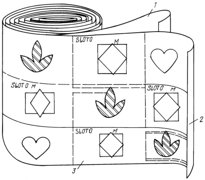 Он содержит чековую ленту 1 и дополнительную ленту 2, разделенную на фрагменты 3, в которых размещена реклама.