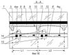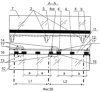 В плазменной цветной панели (ПЦП) переменного тока с поверхностным разрядом прототипа (фиг.1а) пиксел 1 в строках L1, L2 состоит из трех цветных элементов отображения 2: красного цвета – 2R, зеленого цвета – 2G, синего цвета – 2В, отделенных друг от друга разделительными диэлектрическими барьерами 3, и в каждом элементе отображения 2 содержатся два электрода индикации 4 и 4 , каждый состоит из прозрачного проводника 4про и шины 4ш, и около шины 4 ш расположен сканирующий электрод 4ск, а управляющие электроды 5 расположены перпендикулярно электродам индикации 4 и сканирующему электроду 4ск. В режиме индикации разряд 6 происходит между электродом индикации 4 и другим электродом индикации 4, который электрическим режимом работы объединен со сканирующим электродом 4ск. Управляющие электроды 5 формируются на тыльной пластине 7 с нанесением диэлектрика 8 и разделительных по цвету свечения диэлектрических барьеров 3 с последующим нанесением люминофора на поверхность диэлектрика 8 и барьеров 3. Электроды индикации 4 и сканирующие электроды 4ск формируются на лицевой пластине 10 с нанесением прозрачного диэлектрика 11, который покрывается защитным эмиссионным слоем 12, как это видно из сечения А-А (фиг.1в), где разделительные диэлектрические барьеры условно повернуты на 180° градусов. В прототипе в разрядных промежутках 13 осуществляются разряды инициализации 14, а после адресного разряда 15, в выбранном элементе отображения строки L2 осуществляется разряд 6 между электродами 4ск, 4 и электродом индикации 4, как показано на фиг.1в. По объекту – устройство панели, в первом варианте конструкции предлагаемой ПЦП (фиг.2а) с электродами индикации без прозрачных проводников разрядный промежуток переноса разряда 13 между электродами 4 4ск расположен на границе смежных строк L и закрыт светонепроницаемым материалом 16. На фиг.1в, в сечении А-А показаны элементы отображения смежных строк L1, L2, в которых первый электрод 4 расположен на расстоянии “а” от электрода индикации 4 и оно равно расстоянию между электродом индикации 4 строки L1 и сканирующим электродом 4ск смежной строки L2. В элементах отображения строк на поверхности электродов 4 , 4ск разрядного промежутка переноса разряда 13, который покрыт светонепроницаемым материалом 16, расположенным на поверхности лицевой пластины, между диэлектриком 11 и эмиссионным слоем 12 введено дополнительное покрытие 17 с целью увеличения коэффициента вторичной эмиссии электронов. Дополнительное покрытие 17 в виде мозаичной структуры диэлектрических частиц с размером от долей микрон до нескольких микрон формирует рельеф с развитой поверхностью, где увеличена площадь эмиссионного слоя соответственно величине коэффициента вторичной эмиссии электронов при возникновении разряда, что уменьшает напряжение зажигания разряда. После разряда рельеф с развитой поверхностью приводит к повышенной местной концентрации накопленного заряда и потенциала, так как заряды на такой поверхности не растекаются, что позволяет снизить статистическое запаздывание возникновения разряда после адресации выбранного элемента отображения. Дополнительное покрытие 17 может быть нанесено по всей поверхности диэлектрика 12, в том числе и для конструкции ПЦП на фиг.3, в которой диэлектрик 12 выполнен в виде полос из прозрачного 11пр и непрозрачного диэлек