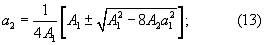 По известному коэффициенту a1 определяются а2 и a0: