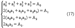 Таким образом, если коэффициенты разложения заданной АЧХ в ряд Фурье равны A0, A1, A2, A3, то система алгебраических уравнений, связывающая искомые весовые коэффициенты с коэффициентами разложения заданной АЧХ будет иметь следующий вид: