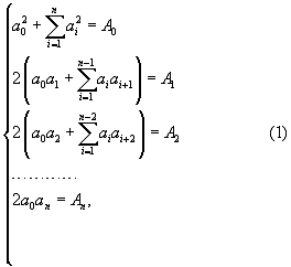 Полученная система алгебраических уравнений является частным случаем общей системы уравнений (1), когда число гармонических составляющих при разложении АЧХ равно n=3.