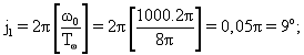 Время задержки между соседними отводами линии задержки и фазовые сдвиги в них имеют следующие значения: