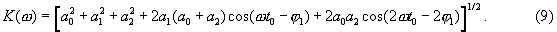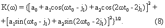 Из выражения (10) следует, что АЧХ фильтра представляет собой тригонометрический ряд Фурье, причем сумма первых трех членов данного выражения – постоянная составляющая этого ряда, а четвертый и пятый члены -соответственно первая и вторая гармоники АЧХ со своими параметрами (амплитудами и начальными фазами).