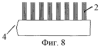При повороте регулировочного винта 4 платформы 5 со щетиной 2 сдвигаются в противоположные друг от друга стороны и с помощью крышки 6 обеспечивают изменение угла наклона щетины 2 по рядам и образование перекрестного положения щетины 2. При этом в первом варианте выполнения (фиг.5) изменение угла наклона щетины обеспечивается поворотом головки 3, во втором варианте выполнения (фиг.6) изменение угла наклона щетины обеспечивается поворотом оконечной части ручки 1, в третьем варианте (фиг.7) – поворотом колесика 7, расположенного на ручке 1 зубной щетки.