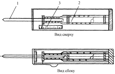Способ осуществляют следующим образом. Больным с хроническим болевым синдромом после комбинированного лечения рака молочной железы определяют максимальный порог болевой чувствительности на симметричных участках здоровой и больной частях тела, выявляя зону изменения болевой чувствительности и степень изменения болевой чувствительности с тем, чтобы в процессе лечения определять его эффективность. Способ заключается в надавливании на кожу в симметричных участках здоровой и больной частях тела приспособлением (чертеж). Приспособление состоит из подпружиненного стилета 1 диаметром 3 мм с притупленным (не повреждающим кожу) пулеобразным концом 2 и неподвижной относительно стилета 1 градуированной шкалой 3. Каждое деление на шкале 3 соответствует 50 граммам сжимаемой стилетом пружины. Показатель смещения стилета фиксируется на пределе терпения больного. Разность показателей при надавливании на симметричные участки здоровой и больной частях тела указывает на выраженность гипостезии либо гиперстезии измененного участка тела и локализацию измененной болевой чувствительности. Уменьшение разницы показателей либо выравнивание показателей на здоровой и больной частях тела, а также уменьшение зоны повреждения указывает на эффективность проводимого лечения.