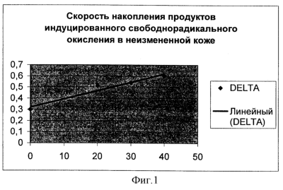 После этого строят график зависимости накопления продуктов свободнорадикального окисления от времени инкубации. Скорость накопления продуктов индуцированного свободнорадикального окисления определяют по полученному графику, используя компьютерную программу из пакета Microsoft Excel.