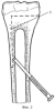 Разрез кожи по внутренней поверхности голени в метафизарном отделе длиной 4-5 см. Надкостницу отслаивают на протяжении 3 см и по задней поверхности под кость подводят защитные лопатки для мягких тканей. Узким долотом рассекают заднюю кортикальную пластину до наружной кортикальной пластины. Контроль осуществляют аппаратом ЭОП. Также пересекают переднюю кортикальную пластину. Рану ушивают.