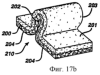 Абсорбирующая ткань, использованная в способе, описанном выше со ссылками на фиг.17a-17f, может быть однослойной или многослойной, содержащей подходящий абсорбирующий материал, раскрытый в последующих частях описания. Точно так же непроницаемый для жидкости материал может быть образован совместно с рядом материалов и в ряде конфигураций, все из которых раскрыты ниже.