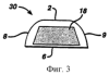 Кроме того, на фигурах 2-6 показаны примеры альтернативных рисунков и мест расположения клея 18 на боковой поверхности 10. Клей 18 может быть нанесен на одно или несколько мест на абсорбирующей структуре 20 в виде непрерывного покрытия, прерывающегося покрытия, соприкасающихся сегментов покрытия, отдельных сегментов покрытия, узорчатого покрытия, волокнистого покрытия и их сочетаний. Рисунки покрытия могут быть, например, в виде точек, штрихов, кругов, симметричных, несимметричных и абстрактных фигур и их сочетаний.
