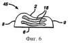 Высота 13 должна быть достаточной для обеспечения возможности прохождения абсорбирующего изделия 20 сквозь пространство между губами для захвата и поглощения жидких выделений из организма, без приложения излишнего давления к малым губам и к преддверию. Для соответствующего прохождения высота 13, измеренная от дна вульвы до наружной стороны вульвы, может быть в зависимости от анатомических размеров пользователя в пределах от примерно 3 мм до примерно 6,5 мм, а предпочтительно – от примерно 6,5 мм до примерно 9,5 мм. Кроме того, высота 13 может быть больше 10 мм, при этом получается высота, которая может быть большей, чем необходимая для достаточного и удобного прохождения сквозь пространство между губами, при условии, что допускается выход излишней высоты за пределы вульвы. Кроме того, такая излишняя высота полезна, поскольку облегчает пользователю захват при введении и удалении абсорбирующего изделия 20. Нет необходимости, чтобы высота 13 была постоянной. Например, для захвата влагалищных выделений она может быть, предпочтительно, большей на заднем конце 9, чем на переднем конце 8, в тех случаях, когда желательно не влиять на чувствительный клитор. Кроме того, высота может быть одной и той же или может не быть одной и той же на переднем и заднем концах 8, 9 соответственно, и может быть большей или меньшей между ними, чем на переднем конце 8 или на заднем конце 9.