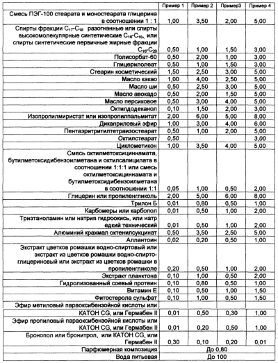 Изобретение относится к медицине, а именно к косметическим средствам, предназначенным для ухода за кожей. Помимо благотворного влияния на организм человека, в том числе на метаболизм витамина D и синтез меланина, ультрафиолетовое излучение оказывает также хорошо известное отрицательное воздействие, приводящее к кожной эритеме, старению кожи (в частности, к преждевременному образованию морщин) и риску возникновения злокачественных новообразований кожи. УФ-излучение активирует процессы сигнальной трансдукции с участием протеинкиназ и транскрипционных факторов, высвобождение цитокинов, образование арахидоновой кислоты (АК) и ее метаболитов, окислительный стресс и, в конечном результате, повреждение ДНК. Под воздействием УФ-облучения активируются кератиноциты и изменяются многие клеточные обменные процессы, такие как высвобождение из мембран АК и ее метаболитов и образование продуктов перекисного окисления. Было обнаружено, что количество высвобождаемой под действием УФ-излучения АК влияет на образование простагландина E2 – одного из химических медиаторов эритемы, и тесно связано с окислительным стрессом. Чтобы предотвратить вредное воздействие УФ-излучения на кожу, используют солнцезащитные средства, поглощающие и/или рассеивающие УФ-лучи, не позволяя им достичь эпидермиса или дермы. Современная косметическая промышленность располагает широким арсеналом УФ-фильтров и вспомогательных ингредиентов, включение которых в рецептуру позволяет не только защищать кожу от прямого воздействия УФ-света, но и смягчать или даже предотвращать развитие побочных эффектов (антиоксиданты, витамины, эмоленты, противовоспалительные агенты, увлажняющие компоненты). И вместе с тем существует определенная потребность в новых материалах для защиты кожи и/или предупреждения УФ-индуцированного фотоповреждения кожи, обеспечивающих более безопасное и долговременное применение. Доказано, что водно-спиртовый экстракт цветков персика (Prunus persica) может защищать ДНК от повреждающего действия УФ-излучения. Он подавляет перекисное окисление липидов под действием УФ-излучения [1]. Для того чтобы уменьшить повседневное воздействие на кожу повреждающих факторов, к которым ей приходится постоянно адаптироваться, нужно применять защитную косметику. Это. главным образом, увлажняющие средства, УФ-фильтры, кремы, содержащие антиоксиданты. Обычно в качестве защитного крема выбирают хороший дневной крем, который обладает всеми указанными характеристиками. Наилучший результат защитная косметика дает при ежедневном использовании, однако, даже кратковременные передышки, которые получает кожа тех, кто пользуется такой косметикой от случая к случаю, позволяют защитным системам кожи расслабиться и восстановить запас адаптационной энергии [2]. Применение солнцезащитных средств с УФ-А-фильтрами очень распространено в странах Западной Европы. Такие косметические гиганты, как Vichy, L’Oreal, Schwarzkopf/Henkel, Beiersdorf, выпускают средства, в аннотации к которым особо подчеркивается гарантированная защита от УФ-А-лучей. Особо следует отметить, что УФ-фильтры вводят не только с целью защиты кожи от УФ-излучения, но и для защиты самой рецептуры, предотвращая фоторазложение готового продукта. Основные тенденции в защите от солнечной радиации: – особое внимание к з