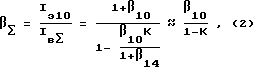 В заявляемом устройстве (фиг. 2) регулирующий элемент (РЭ) составлен из транзисторов 10, 11, 13, 14. Можно показать, что результирующий коэффициент передачи РЭ по току, ![]() определяется выражением;![]() где IЭ10 – ток эмиттера транзистора 10; Iв – результирующий входной ток РЭ, равный разности тока базы транзистора 10 и тока коллектора транзистора 13; 10, 14 – – коэффициенты передачи тока базы в схеме с общим эмиттером транзисторов 10 и 14 соответственно;K – коэффициент передачи по току повторителя, выполненного на транзисторах 11 и 13. Из выражения (2) следует, что в зависимости от коэффициентов 10, 14 и K, значение ![]() может быть сколь угодно большим. А чем больше ![]() , тем меньше влияние изменения тока нагрузки на режим работы источника опорного напряжения и, следовательно, на выходное напряжение.