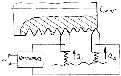 Восстановление изношенной резьбы и отделочно-упрочняющая обработка нормальных витков обеспечивается за счет разности усилия прижатия инструментов к поверхностям Q1 и Q2. В первом случае усилие Q1 не приводит к вытеснению металла из впадины и перемещению его на боковые поверхности. Усилие прижатия инструмента к дефектной резьбовой поверхности Q2 подбирается таким образом, чтобы обеспечить восстановление полного профиля витков до уровня номинальной резьбы.