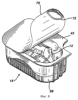 Ссылаясь на фиг.8, запечатанная упаковка 14 включает пластиковый контейнер 68 и съемный покрывной лист 70, который приклеивается на контейнер 68, чтобы укрыть и закрыть вход в область хранения сменного блока 13. Язычок 72 для захвата прикреплен к углу покрывного листа 70, на конце выступа 43 для использования при первоначальном отделении покрывного листа 70.