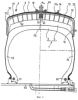 – Фиг.2 представляет собой схематический вид в частичном радиальном разрезе вулканизационной формы, установленной на покрышке пневматической шины.