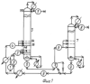 Колонна 3 имеет 150 колпачковых тарелок и работает с флегмовым числом 1,2. Температура верха колонны 44°С, а в кубе – 136°С. С верха колонны 3 по линии 5 отбирают изопентан с содержанием изоамиленов до 1 вес.%. Из куба колонны 3 по линии 6 отбирают насыщенный пентен – пентадиенами экстрагент и подают в колонну 7 на десорбцию ДМФА. С верха колонны 7 по линии 8 отбирают пентен – пентадиеновую фракцию и направляют на вторую стадию разделения. Из куба колонны 7 десорбированный экстрагент ДМФА снова подают по линии 9 на прямое смешивание с сырьем в соотношении 3:1, а остальной ДМФА по линии 4 поступает снова на процесс разделения.