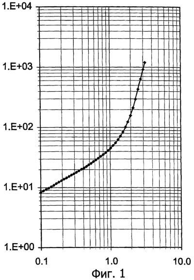 Динамическую вязкость определяли с помощью реогониометра с фиксированной деформацией, выпускаемого фирмой RHEOMETRICS под названием ARES [ADVANCED RHEOLOGICAL EXPANSION SYSTEM (система ускоренного реологического расширения)]. Измерения осуществляли на образце, помещенном между двумя параллельными пластинами, подвергаемом деформации и имеющем диаметр 25 мм и толщину 2 мм, вырезанном из прессованной пластины. Кривая, приведенная на фигуре 2 (диаграмма ARES), представляет собой изменение при температуре 170°С динамической вязкости, выраженной в Па·с, в зависимости от частоты, выраженной в рад/с.