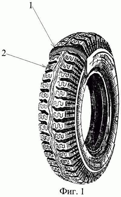 На фиг.1 показан съемный протектор 1, надетый на основную шину 2.