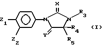 (57) Реферат: Замещенные фенилимидазолидины формулы I, где Y – O или NH; Z2 – CF3; Z1 – циано- или нитрорадикал; X – O или S; R3 – H или алкил, возможно замещенный галогеном или цианорадикалом; R4, R5 – алкил, возможно замещенный гидроксилом, который может быть защищен, во всех возможных изомерных, рацемических, энантиомерных и диастереомерных формах, а также соли присоединения кислот или оснований, обладают антиандрогенной активностью. 6 с. и 2 з.п. ф-лы.