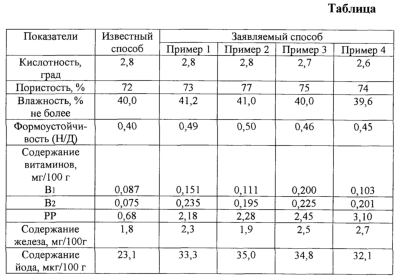 Изобретение относится к пищевой промышленности, в частности к хлебопекарной, а именно к производству хлеба и хлебобулочных изделий из пшеничной муки высшего, первого или второго сорта, предназначенных для массового и профилактического питания, в том числе детей и подростков. Способ предусматривает приготовление опары из рецептурных компонентов, брожение опары и приготовление теста на основе опары, брожение теста, его разделку, расстойку и выпечку готовых изделий. При получении опары или теста вводят полифункциональную добавку, включающую витамины В1; В2; РР, а также железа сульфат и калия йодид, взятые в определенном соотношении. Добавка вводят в количестве 0,01-0,5% от массы муки. В результате осуществления способа интенсифицируется процесс брожения теста, повышается его газообразующая способность, увеличиваются формоустойчивость и пористость хлеба, а также содержание витаминов и минеральных веществ, улучшаются органолептические показатели хлеба. 2 з.п. ф-лы, 1 табл.