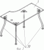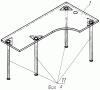В четвертом варианте выполнения стола, при аналогичном выполнении столешницы опорное основание выполнено из четырех прямолинейных ножек, три из которых скреплены со столешницей в ее угловых зонах, а одна – в средней части выемки столешницы.