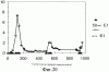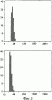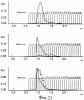 Фиг.5. Анализ динамического светорассеяния, выраженного в виде процента числа частиц по отношению к наблюдаемому диаметру в нм, для Е1s в ЗФР/0,1% бетаина (сверху) или 0,5% бетаина (снизу).
