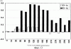 Фиг.13. Анализ Е1 гуморальных ответов на Е1 белки субтипа 1а и субтипа 1b у шимпанзе Ton. Для этой цели Е1 генотип 1а получали из HCV-H последовательности; получали рекомбинантный вирус коровьей оспы, экспрессирующий тот же участок Е1, что и для генотипа 1b (смотри ниже). Е1 получали из сырых лизатов инфицированных вирусом коровьей оспы клеток RK13 (полученных, как описано в Maertens et al. (PCT/EP95/03031)). Реактивность антител измеряли с помощью непрямого ELISA, при котором Е1 адсорбировали на титрационных микропланшетах посредством высоко связывающего маннозу агглютинина Galathus nivalis (GNA). Специфические антитела обнаруживали, используя специфическую вторичную антисыворотку против IgG человека, конъюгированную с пероксидазой. В качестве субстрата для цветового проявления использовали ТМВ. Результаты выражены в виде дифференциальной ОП (оптической плотности) (ОП лунки с адсорбированным Е1 минус ОП лунки без адсорбированного Е1).