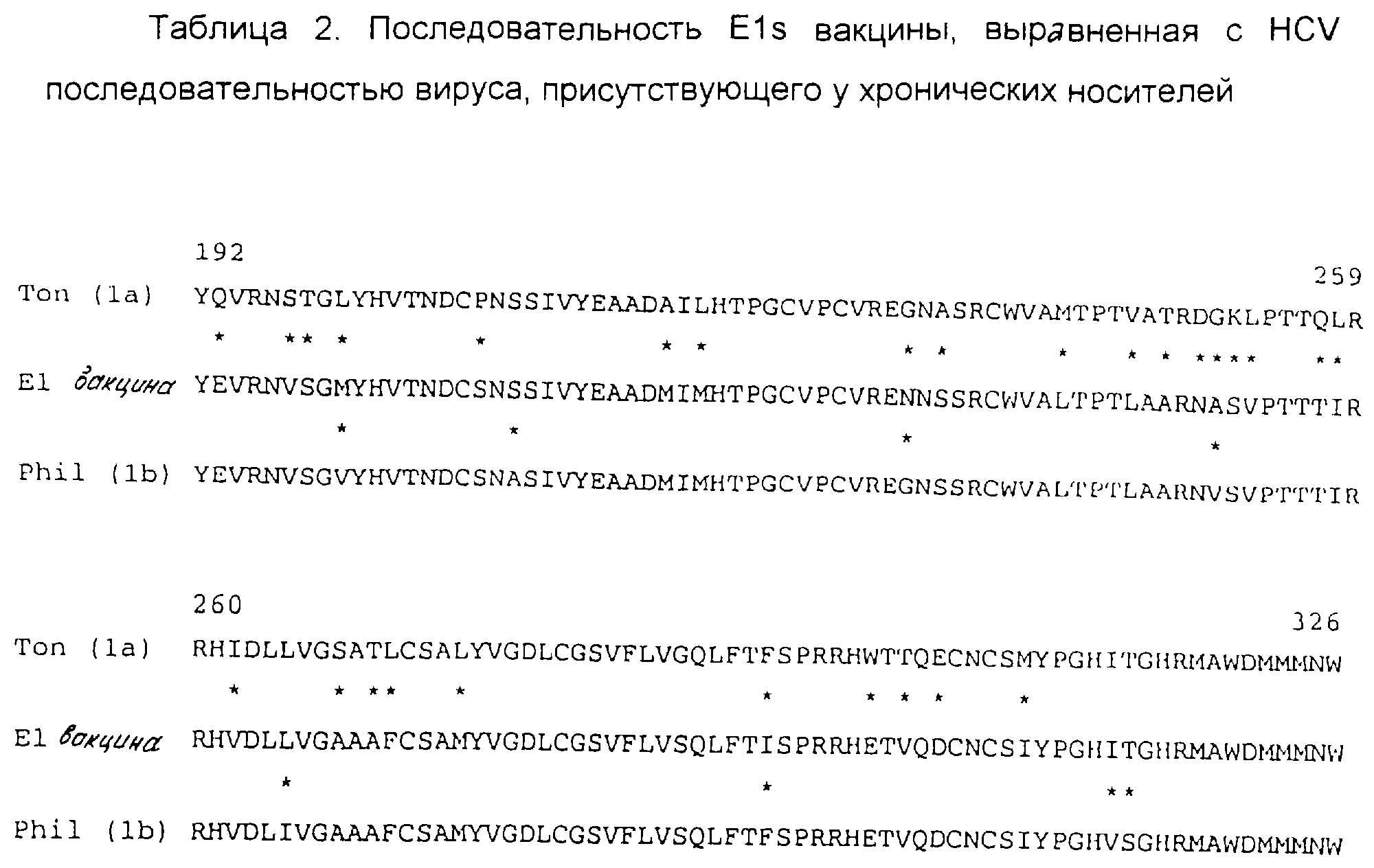 В таблице 2 представлены последовательности белка Е1 вакцины и белка Е1, как он обнаружен у инфицированных шимпанзе Phil и Ton. Изолят субтипа 1b от Phil отличается на 5,92% от вакцинного штамма. Различие между вакциной и изолятом субтипа 1а от Ton составило 20,74%.