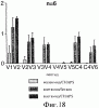 Фиг.18. Эпитопное картирование гуморального иммунного ответа, индуцированного иммунизацией различными препаратами E1s у мышей. Реактивность антител по отношению к различным пептидам измеряли с помощью непрямого ELISA, при котором биотинилированные пептиды (перечисленные в таблице 4) адсорбировали на титрационных микропланшетах посредством стрептавидина. Мышиные сыворотки разбавляли 1/20, и специфические антитела обнаруживали, используя специфическую вторичную антисыворотку против IgG человека, конъюгированную с пероксидазой. В качестве субстрата для цветового проявления использовали ТМВ.