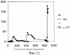 Фиг.20. Титры антител, индуцированных двумя иммунизациями приблизительно на 1000-е сутки E1s-ацетамидом у шимпанзе Phil. Антитела анти-Е1 определяли с помощью непрямого ELISA: специфические антитела, связывающиеся с твердой фазой Е1, обнаруживали, используя специфическую вторичную антисыворотку против IgG человека, конъюгированную с пероксидазой. Титр выражен в единицах/мл, эти единицы относятся к местному стандарту, который основан на человеческих сыворотках.