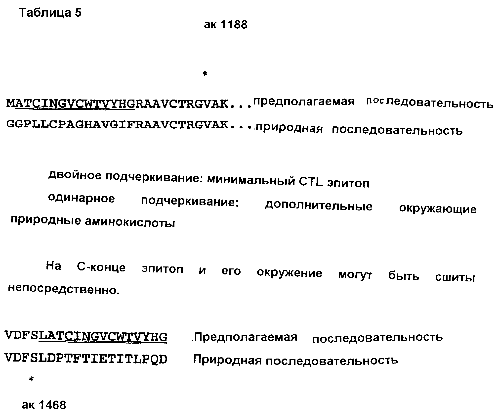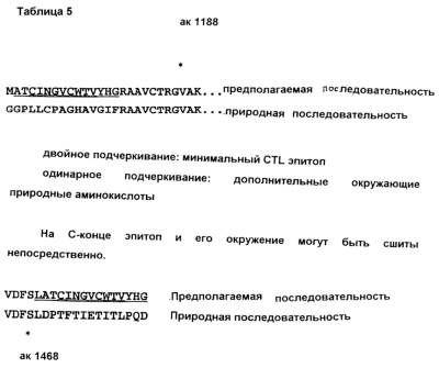 В таблице 5 показана перестройка NS3 для получения более короткого белка, несущего все главные эпитопы, коррелирующие с клиренсом вируса.