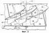 Фигура 4 – представленный в увеличенном масштабе осевой боковой вид трех расположенных по окружности одна за другой соседних лопаток вентилятора по их кромкам внутри круга, помеченного цифрой 4 на фигуре 1.