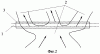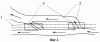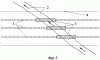 В приведенных вариантах показаны пересечения магистрального трубопровода 1 поверхностными пересыхающими водотоками 2, направление движения которых показано стрелками. Во всех вариантах участки, предрасположенные к КРН 3, находятся в зонах пересечения трубопровода поверхностным пересыхающим водотоком (или его частью) под углом, лежащим в промежутке значений от 15° до 165°. На фиг.3 показан вариант пересечения МТ 1, когда признаки водотока невозможно определить в пределах трассы трубопровода. В этом случае траекторию поверхностного пересыхающего водотока определяют за границами 4 полосы планировки трассы магистральных трубопроводов и интерполируют ее на трассу магистральных трубопроводов.