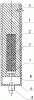 1 – направляющая, 2 – балласт, 3 – метательный пороховой заряд, 4 – пироинициатор, 5 – элементы фиксации, 6 – свободный объем направляющей, 7 – внутренняя полость балласта, 8 – расходное отверстие.