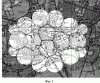 Зоны перекрытия ( ) на фиг.1 и фиг.2 показаны в виде областей наложения пересекающихся окружностей и показаны штриховкой. Общая площадь (Sобщ) ограничена сплошной толстой линией и представляется в виде шестиугольных фрагментов (фиг.1 и фиг.2), похожих на усеченные ромбы.