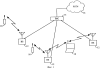 Согласно применению некоторых протоколов связи на основе МСДКРК: абонентское устройство 10 может одновременно осуществлять межсоединение с двумя базовыми станциями 12 по методике “мягкой передачи” вызова. Систему и способ работы сотового телефона по методике МСДКРК описывают в патенте США №5103459 на “Систему и способ формирования форм сигнала в сотовой телефонной системе МСДКРК”, переуступленной правопреемнику данного изобретения и включенной в данное описание в качестве ссылки (“патент’ 459”). Система в соответствии с патентом’ 459 выполнена по существу в соответствии с использованием стандарта IS-95 межсоединения в эфире.