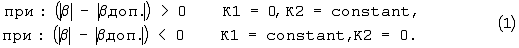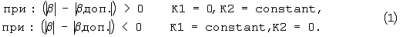 В случае специального режима стабилизации курса с одновременной стабилизацией фиксированного угла дрейфа в зависимоси (1) значение допустимого угла дрейфа доп переводится в заданное значение зд, а коэффициенты регулирования принимаются: К1=0, K2=constant.