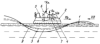 По ледяному покрову 1 начинают перемещать СВП 2 с резонансной скоростью Vp. Если амплитуда возбуждаемых при этом основных ИГВ 3 недостаточна для разрушения льда 1, то предварительно установленные на верхней палубе 4 пластины 5 периодически с резонансной частотой р поворачивают от 0 до углов атаки ± , т.е. до положений 6 и 7. При наличии ветра со скоростью Vв СВП направляют ему навстречу. Периодический поворот пластин 5 на углы ± приведет к появлению и динамическому приложению к судну аэродинамической подъемной силы ±Rа, а направление СВП навстречу ветру – к обтеканию пластин набегающим потоком со скоростью Vр+Vв. Динамическое положение силы ±Rа приведет к возбуждению дополнительных ИГВ 8. Взаимодействие основных 3 и дополнительных 8 ИГВ увеличит амплитуду суммарных ИГВ 9, что вызовет рост толщины разрушаемого льда 1.