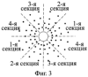Фиг.3 – схема расположения скважин и секции очередности взрывания скважин.