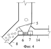 После проходки рудоспусков в области их днища устанавливается дробильное звено (чаша-ступа) с основанием в виде мощной плиты 6 и высотой 3 м с углом наклона стенок к основанию 45-60° и крепится на железобетонное основание, сооружается бункер с питателем 10 (пластинчатый, применяемый на фабриках), сооружается камера 13 для дробилки (щековой типа ЩДП) производительностью 1.5-2000 т/час и необходимым оборудованием (промежуточный конвейер), создается трасса для магистрального конвейера 12. Емкость бункера 8 3-5 тыс. т, рассчитанная с учетом неравномерности загрузки руды в рудоспуск 1.