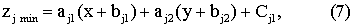 zj min – текущее значение предельной величины в функции параметров x, y авиадвигателя;